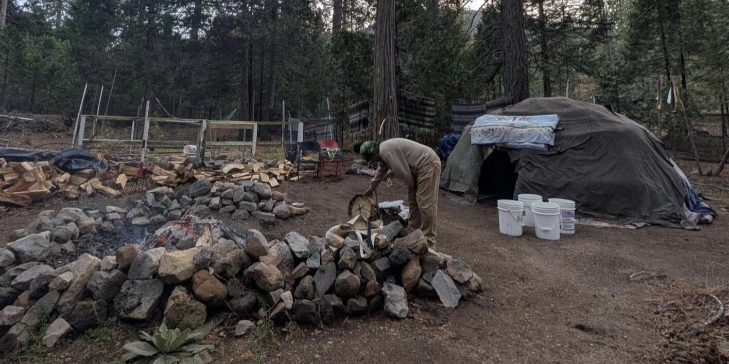 On Halloween evening, after landing in Redding California, our adventure began with a visit to an Inipi sweat lodge. The lodge itself was handmade from red willow, tied with bamboo to form a star.